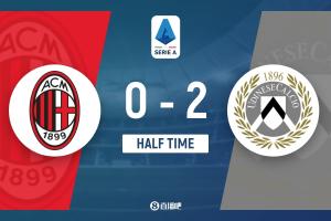 半场-AC米兰0射正0-2乌迪内斯 埃克勒卡姆破门巴尔泰萨吉乌龙