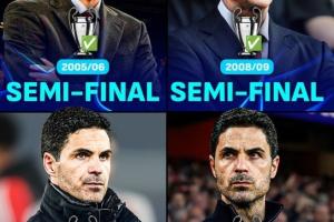 阿尔特塔追平了温格在阿森纳的欧冠半决赛次数👏