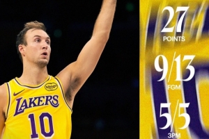 洛城大舞台!湖人官方发布肯纳德本场数据海报:关键表现
