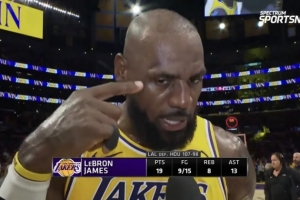 体育资讯4月19日讯 今日,湖人在季后赛首轮G1中107-98主场击败火箭,系列赛1-0领先。赛后,湖人球星詹姆斯接受了采访。